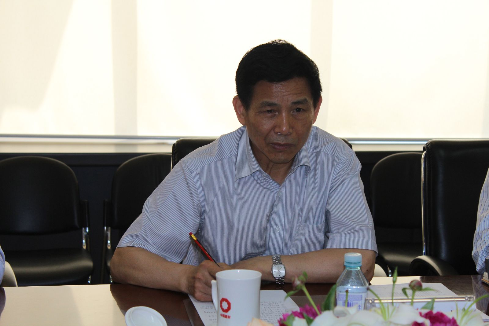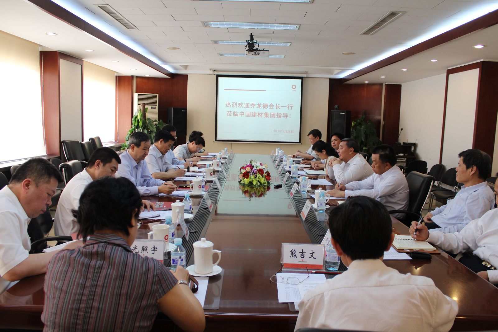 来源:CNBM 发布时间:2011-05-262011年5月24日,中国建筑材料联合会会长乔龙德一行来集团公司调研,了解beat365体育官方网站近期的发展情况以及对联合会下一步开展工作的意见和建议。集团公司董事长宋志平,总经理姚燕热情接待了乔龙德会长一行。中国建材联合会党委书记、常务副会长孙向远,副会长、党委副书记叶向阳,秘书长张东壮,财务总监祁绍平,副秘书长齐子刚,集团公司董事、中国建材股份有限公司总裁曹江林,集团公司党委副书记、纪委书记郝振华,集团公司副总经理郭朝民、马建国、刘宝瑛,总会计师武吉伟,工会主席熊吉文,董事会秘书光照宇等参加了此次调研活动。