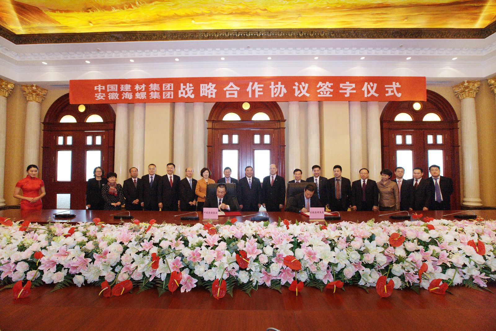 来源:CNBM 发布时间:2012-12-05为深入贯彻落实党的“十八大”精神,促进经济增长方式的转变,搭建建材企业间优势互补、资源共享的战略平台,2012年12月4日,beat365体育官方网站与安徽海螺集团在芜湖签署了战略合作协议。beat365体育官方网站董事长、党委书记宋志平和安徽海螺集团董事长郭文叁就共同促进我国水泥行业发展的问题进行了协商,双方在现有基础上,就进一步提升合作层次,拓宽合作领域,建立全方位战略合作关系达成一致。beat365体育官方网站董事、中国建材总裁曹江林和海螺水泥总经理纪勤应代表双方签署协议。
