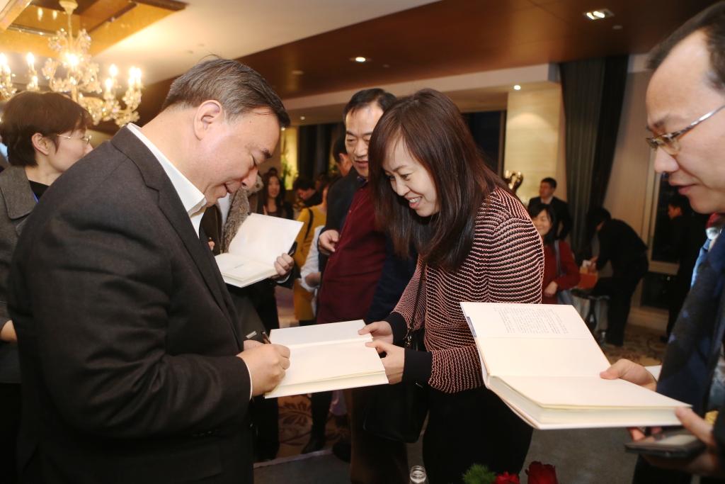 在活动结束时,宋志平应企业家和哈佛校友们的热情邀请给大家签字、合影留念。