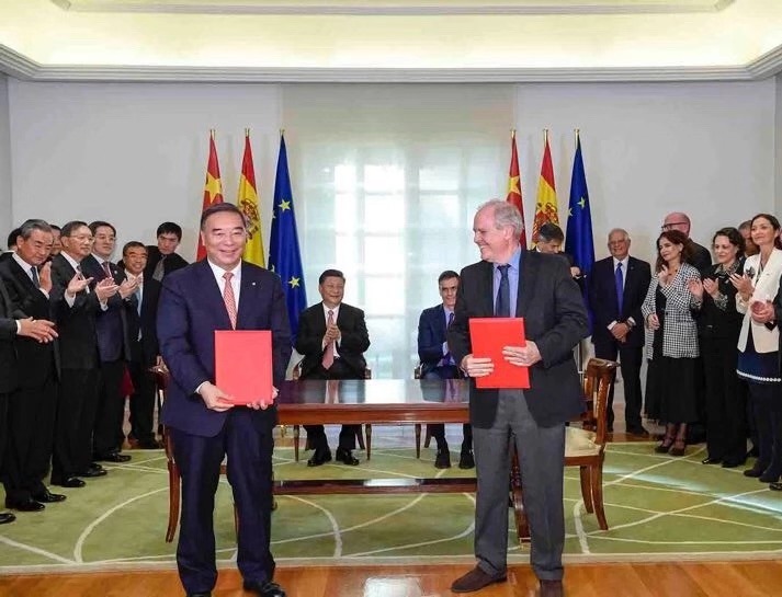 访问期间,习近平主席与桑切斯首相还共同见证了重大合作项目签字与换文仪式,宋志平与西班牙BHS公司董事长交换了“关于联合开发绿色光伏一体化住宅项目的合作协议”。根据该协议,集团所属国际工程公司将与西班牙BHS公司合作为霍斯皮莱塔市提供5000套绿色环保光伏一体化住宅,未来双方还将在优势互补的基础上加大在研发设计、第三方市场合作等领域的紧密合作。