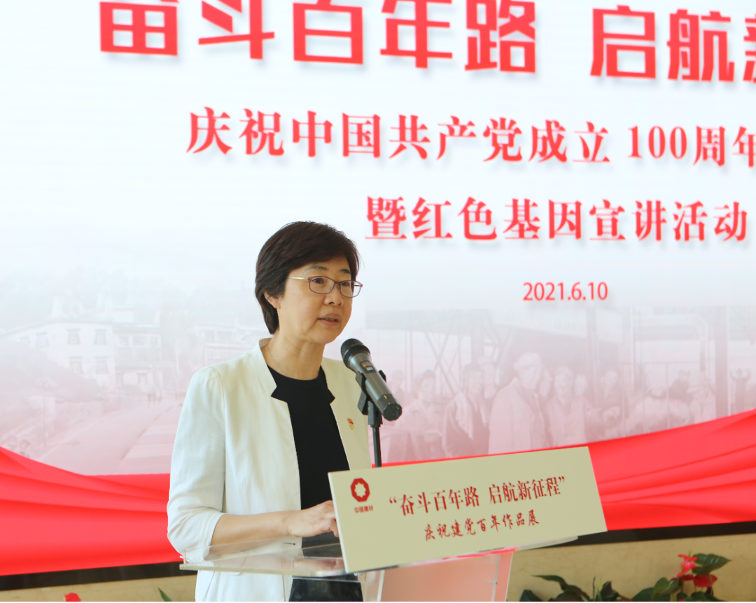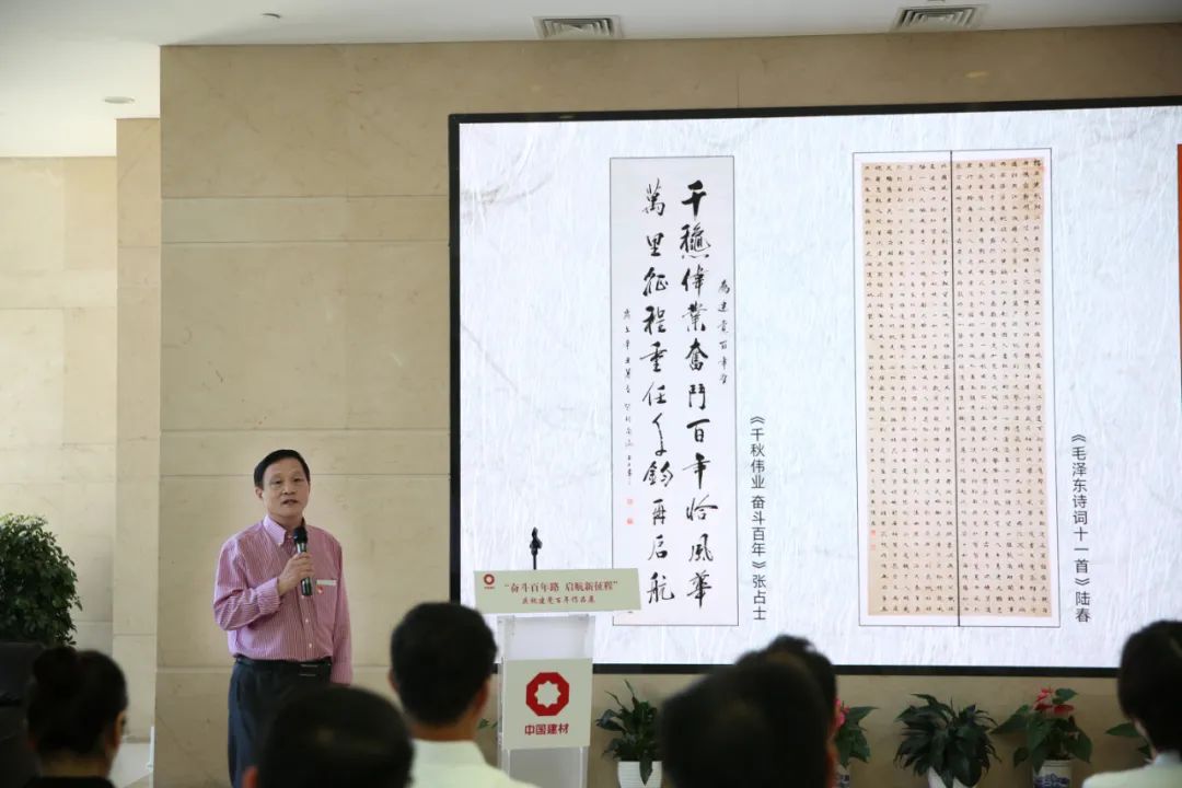 来源:集团党委宣传部 发布时间:2021-06-16为庆祝中国共产党成立100 周年,充分展示中国共产党的辉煌历程和丰功伟绩,记录beat365体育官方网站在党的领导下取得的成绩和展现的精神风貌,6月10日,beat365体育官方网站善用文化中心举办2021年“奋斗百年路 起航新征程”作品展揭幕暨红色基因宣讲活动。beat365体育官方网站党委副书记孙力实,中国建材杂志社名誉社长、中国建材联合会书画艺术委员会常务副会长秦春雨出席并为作品展揭幕。beat365体育官方网站党委宣传部部长张静、凯盛科技党委副书记李志铭、财务公司纪委书记袁东、中联水泥党委副书记武玉金、中国复材党委副书记何继秀等参加活动。
