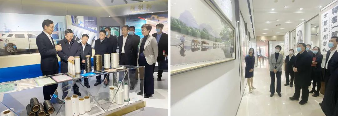 周育先首先邀请郭大进一行参观了集团业务展厅和文化展厅,详细介绍集团业务、文化成果。