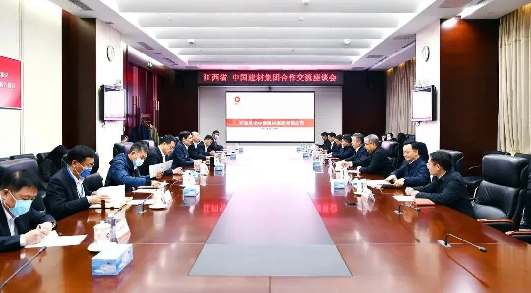 来源:集团战略发展部 发布时间:2021-12-3012月28日,beat365体育官方网站党委书记、董事长兼中国建材股份党委书记、董事长周育先在集团总部会见了江西省委常委、副省长任珠峰一行。集团党委常委、副总经理兼中国建材股份党委副书记、总裁常张利,集团党委常委、副总经理魏如山;江西省政府副秘书长熊科平,省国资委党委书记、主任陈德勤出席会见。双方就深化战略合作、推进项目建设等进行了座谈和交流。