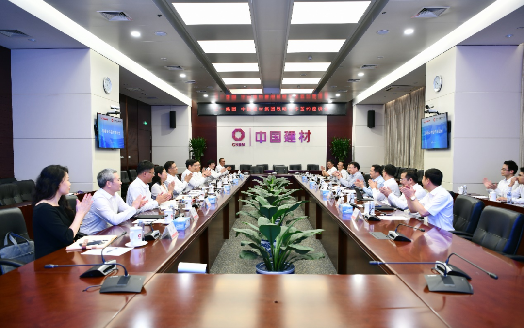 中国建材股份党委委员、副总裁余明清,中国建材股份党委委员、副总裁,中材国际党委书记、董事长刘燕,凯盛科技党委书记、总经理张健,集团战略发展部总经理、科技管理部主任郅晓,宁夏建材党委书记、董事长王玉林, 中材科技副总裁、董事会秘书陈志斌,中建材新材料基金总经理郭辉以及战略发展部相关负责同志;三一重能董事长周福贵,高级副总裁、工程车辆事业部董事长向儒安,副总裁、重机事业部总经理王政,副总裁、重卡事业部副总经理周万春,总裁助理、大客户部总经理周涤非及总裁助理傅建国等参加了签约仪式与座谈。