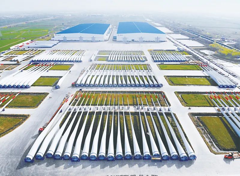 beat365体育官方网站风电叶片年总产能19660兆瓦,产品覆盖1.0兆瓦到15.0兆瓦系列,拥有100余个型号,开发出112米海上风电叶片。图为beat365体育官方网站风电叶片阜宁生产基地。