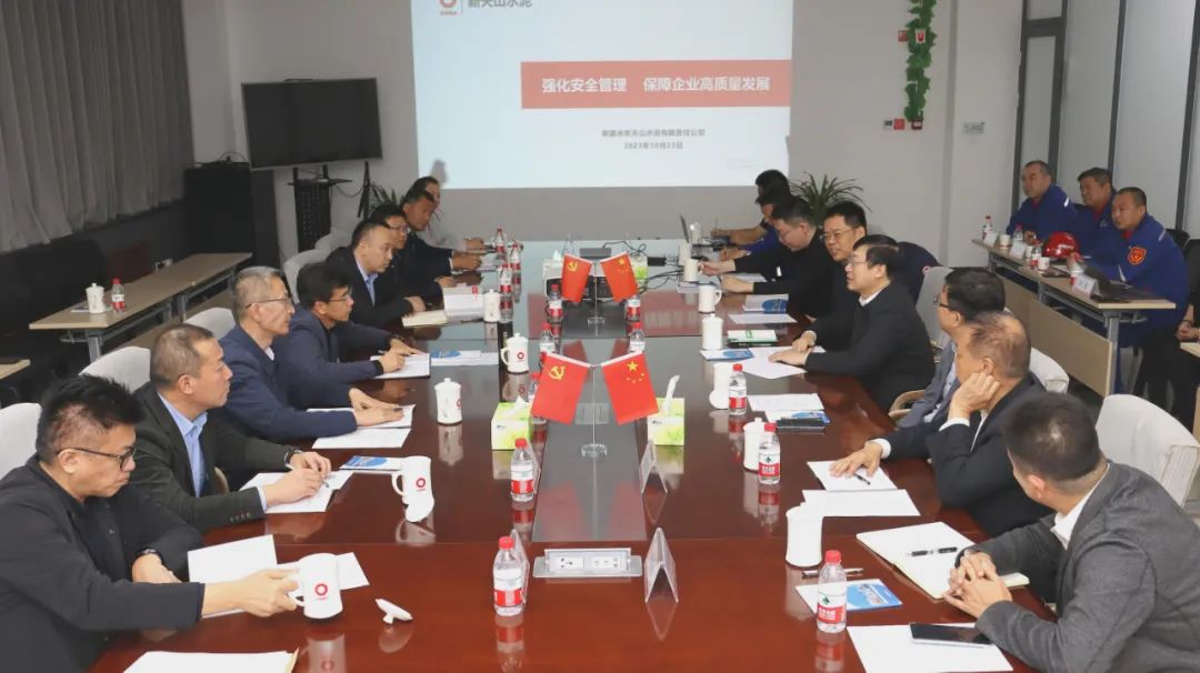 乌鲁木齐市应急管理局局长周晟宇,米东区副区长马连营,集团安全环保部总经理李宁,新疆水泥党委书记、董事长、总裁王鲁岩,信云智联总经理王乔晨等参加调研。
