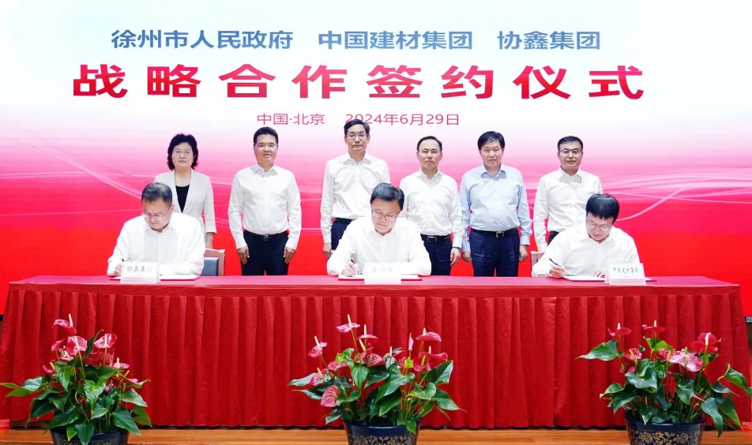 来源:集团战略发展部(国际合作部) 发布时间:2024-07-026月29日,beat365体育官方网站与徐州市、协鑫集团在京举行战略合作协议签约仪式。beat365体育官方网站党委书记、董事长,中国建材股份党委书记、董事长周育先,徐州市委书记宋乐伟,协鑫集团董事长朱共山出席仪式并见证签约。徐州市副市长吴卫东,beat365体育官方网站党委常委、副总经理王于猛,协鑫集团副总裁、协鑫能科副总裁宋超代表各方签署战略合作协议。徐州市委副书记、市长王剑锋,徐州市委常委、铜山区委书记、高新区党工委书记龚维芳;beat365体育官方网站首席营运官、凯盛科技党委书记、董事长尹自波出席仪式。