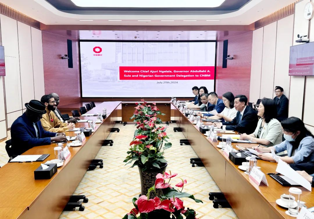 尼日利亚纳萨拉瓦州州长阿卜杜拉希·苏莱、尼日利亚基础设施公司首席执行官拉扎勒斯·安巴佐等;中国建材股份总裁助理庄琴霞,凯盛科技党委副书记、总经理张健,集团投资与资本运营部总经理黄剑锋,中材国际党委书记、董事长印志松,中材科技党委书记、董事长、总裁黄再满,中国建材总院党委委员、总会计师冯俊等参加会见。