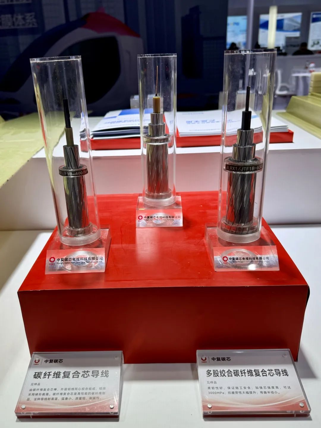 展出了专为风电叶片开发的4款不同类型的拉挤板材,其中碳纤维拉挤板材涵盖140、145、150和155GPa模量等级,以满足不同叶片长度(110~140m及以上)需求,大幅提升风电叶片的性能和效率。作为国内领先的碳纤维复合芯导线研发生产企业,此类产品已在全球范围广泛应用。碳纤维光纤复合芯导线和绞合型碳纤维复合芯导线为电力行业带来更高的安全性和效率。
