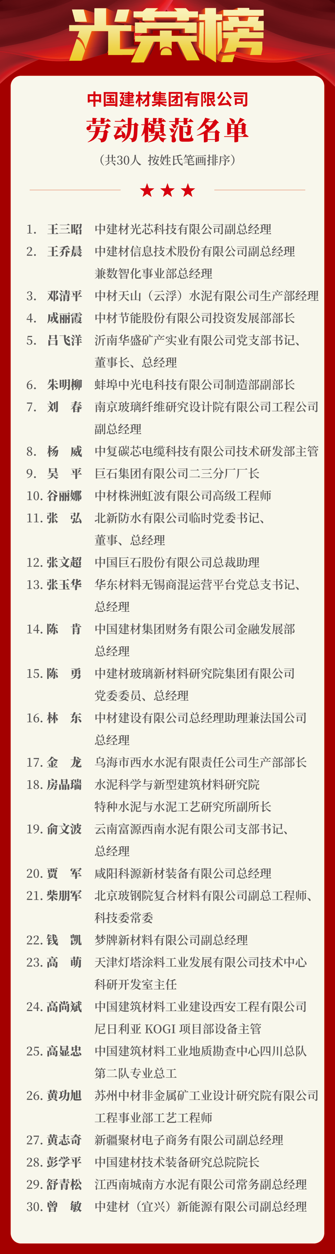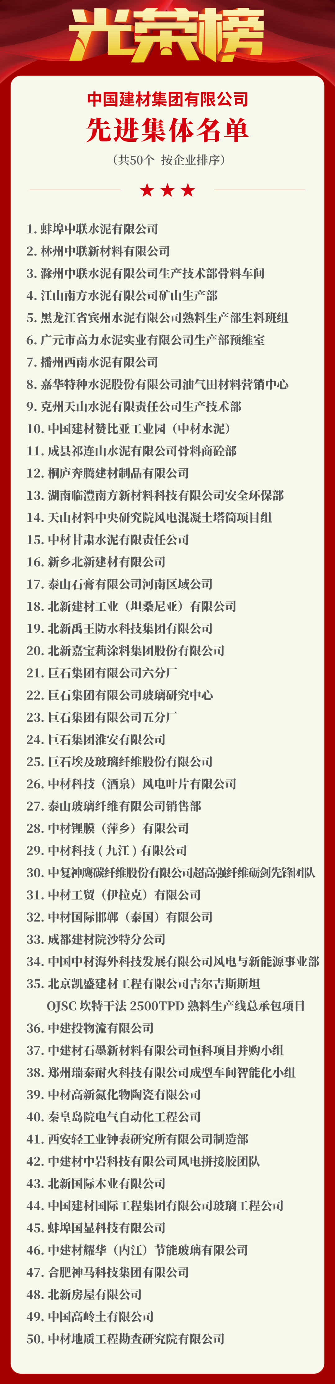 为表彰先进,树立典型,大力弘扬劳模精神、劳动精神、工匠精神,进一步激励广大干部职工在集团高质量发展中建功立业,集团工会决定,授予舒青松等30人“beat365体育官方网站劳动模范”荣誉称号,授予蚌埠中联水泥有限公司等50个基层单位“beat365体育官方网站先进集体”荣誉称号。会上,对刘少兵、孙元成、李伟、陈秋飞、赵小梅、郭清以等6名荣获“全国劳动模范”的同志予以通报表彰,向集团劳动模范和先进集体代表颁发奖章、证书和奖牌。
