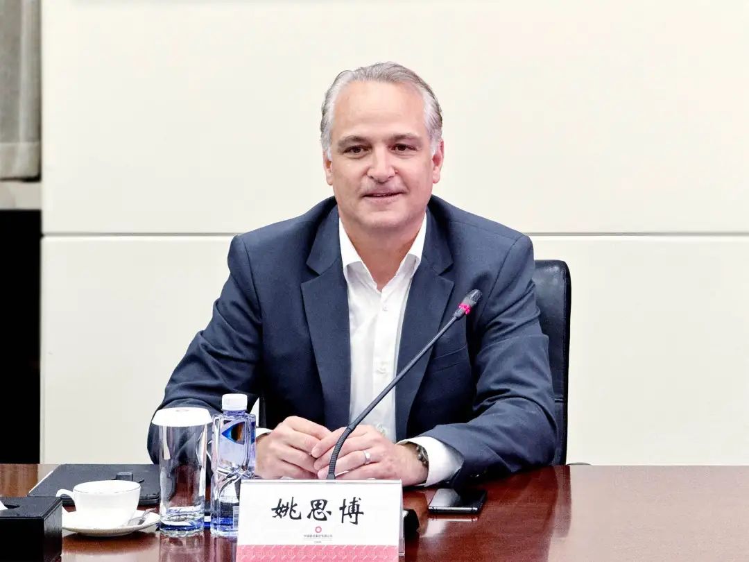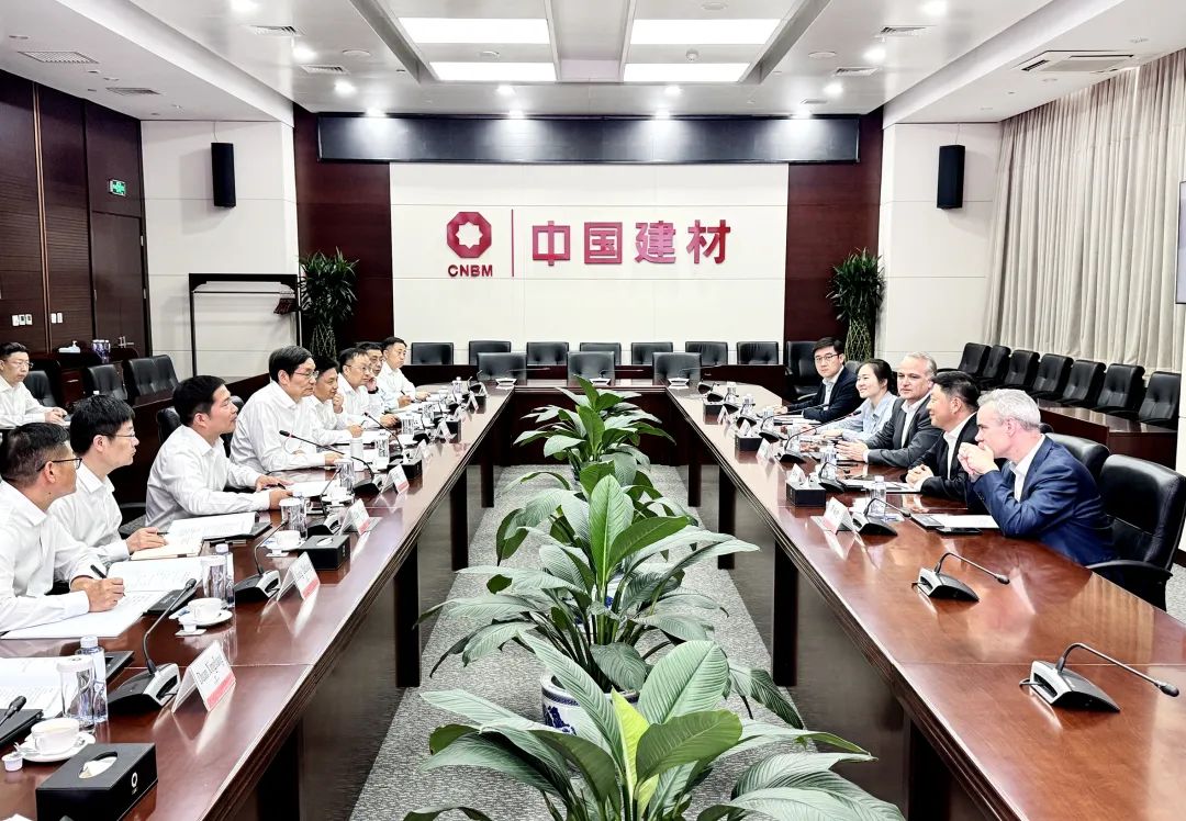 周育先对姚思博一行到访表示欢迎,介绍了集团整体业务布局,分享了绿色化、智能化、国际化转型有关情况。他表示,中国建材与西卡同处材料行业,未来双方可在基础建材、化学建材等领域推进产业协同,共同探索叶片回收、建筑垃圾处理等循环经济领域,并在科技创新、标准制定方面开展紧密合作。他指出,中国建材胸怀全球地图,正在着力落实“十年再造”国际化战略,未来希望与西卡共同开发第三国市场,推广绿色低碳、节能环保的综合解决方案,为世界经济发展贡献材料产业智慧。