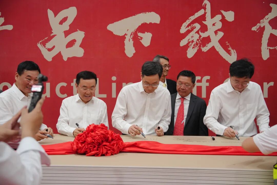 全体嘉宾对生产批次的第一批下线石膏板进行了产品下线揭幕和签字留念。