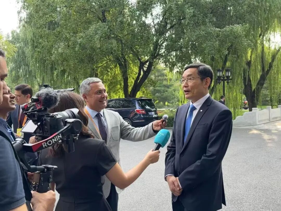 会谈前后,beat365体育官方网站董事长周育先应邀接受了乌兹卫星新闻和报道电视台等主流媒体的采访。
