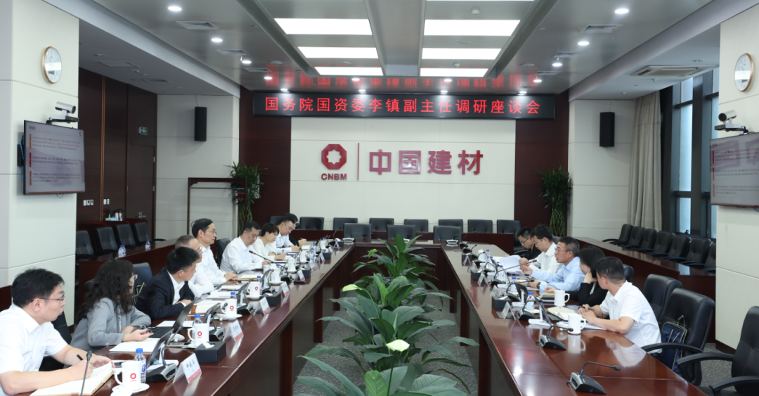 周育先汇报了中国建材近年来在经营业绩、科技创新、产业焕新、党的建设等方面的工作情况,重点汇报了集团立足国有资本投资公司定位,通过深入开展专业化整合和战略性并购,优化资源配置和资本布局,以投资赋能新质生产力发展的主要做法和工作体会。