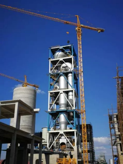 中国建材工程总承包的哈萨克西里日产2500吨熟料水泥EPC项目预热器塔架顺利封顶