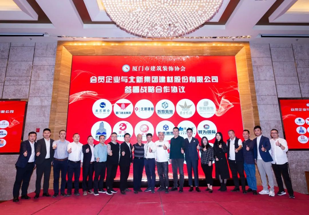 近日,厦门市建筑装饰协会五届六次会员代表大会、北新建材与厦门市建筑装饰协会17家会员企业战略合作签约仪式在厦门举行,全场500名会员企业代表共同见证签约。