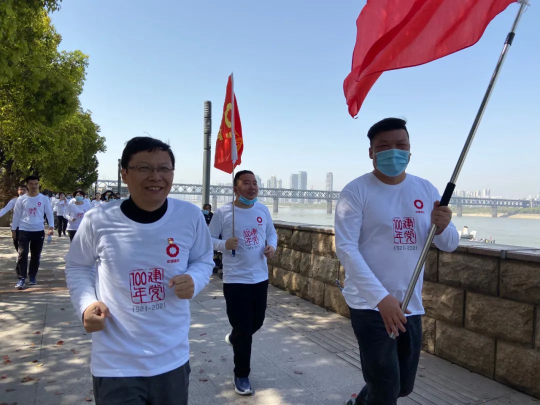 上午10点,在鲜艳党旗的带领下,健跑团在中国共产党纪律建设历史陈列馆门前拉开了活动序幕。在明媚的阳光下,雄伟的长江大桥和两岸拔地而起的高楼遥相呼应,我们的运动健儿手握中国建材“健跑百年路 奋斗新征程”的队旗,沿着武昌江滩绿道,用脚步和汗水重温党的光辉历程,追寻革命先辈的光辉足迹,以斗志昂扬的姿态奔向一个新的一百年。本次跑步路线以中共五大会址纪念馆为中心,途经中华路、武昌江滩绿道、红巷、武昌农讲所旧址纪念馆,设置全程4.27公里和迷你跑2.1公里。4.27公里寓意党的五大召开日期4月27日,2.1公里寓意1921年党的诞生与2021年建党100周年。