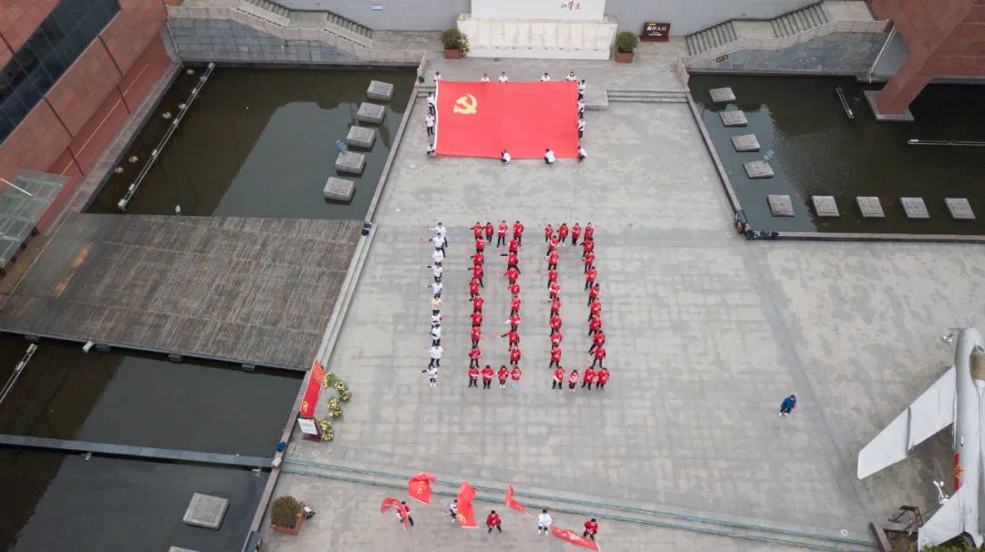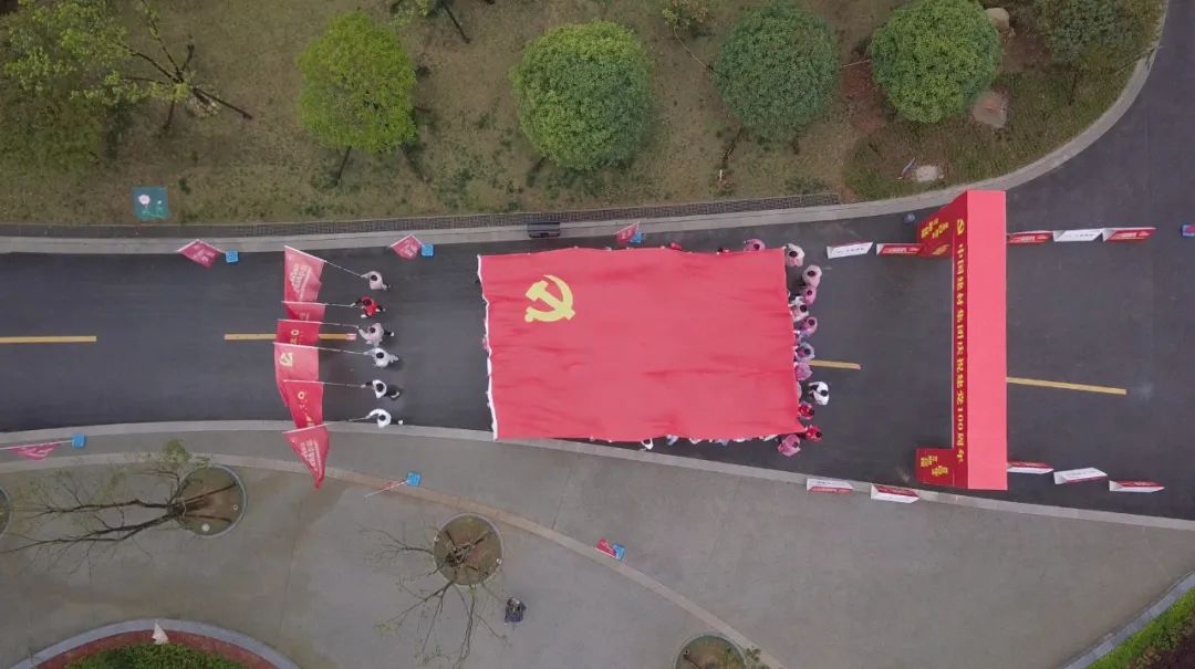 活动现场,参与人员站成心形、摆出比心手势和数字“100”字样进行拍摄留念,百人举旗,舞动党旗,寓意党旗飘飘四季如歌、伴我们走过岁月峥嵘,寓意党旗飘飘江山如画、领我们奔向时代高峰。