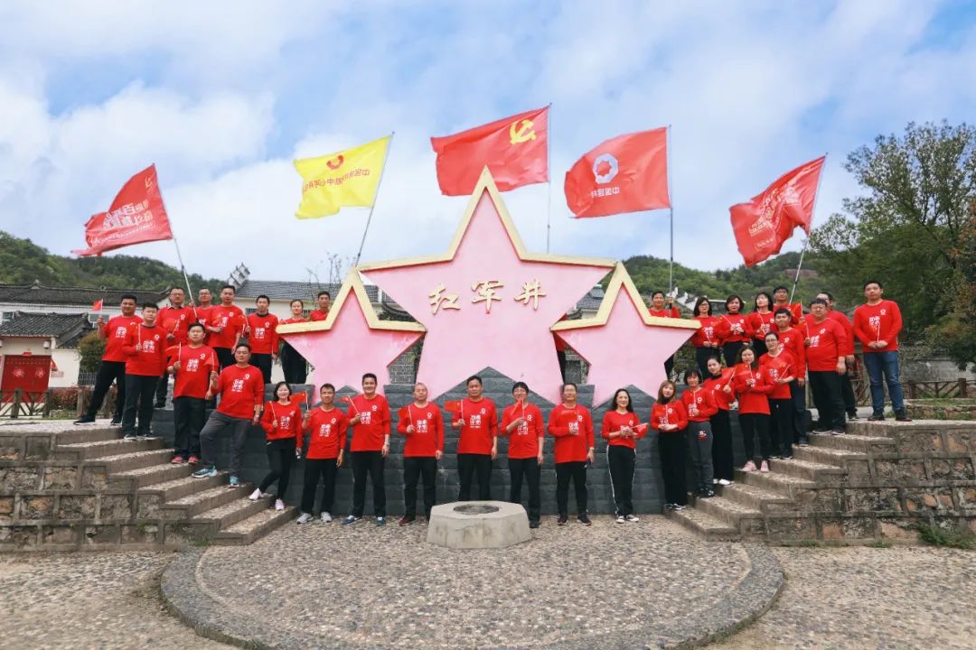本次活动分为重走长征路2.5公里,寓意红军二万五千里长征;全程7.1公里,寓意“七一”党的生日。队伍沿着先辈的足迹,穿过曲折回转的青石板,攀越陡峭崎岖的山路,跨过悬吊于两山之间的英雄桥,登上神圣的红军纪坛,驻足于象征着红二十五军出征地的银杏树下,清澈纯净的红军井水,净化了我们的心灵。