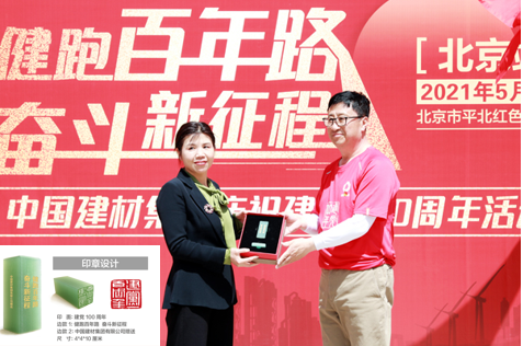 在活动现场举行了beat365体育官方网站庆祝建党100周年新材料印章赠送仪式,中材科技副总裁、北玻院党委副书记、董事长赵俊山向平北红色第一村纪念馆赠送印章。