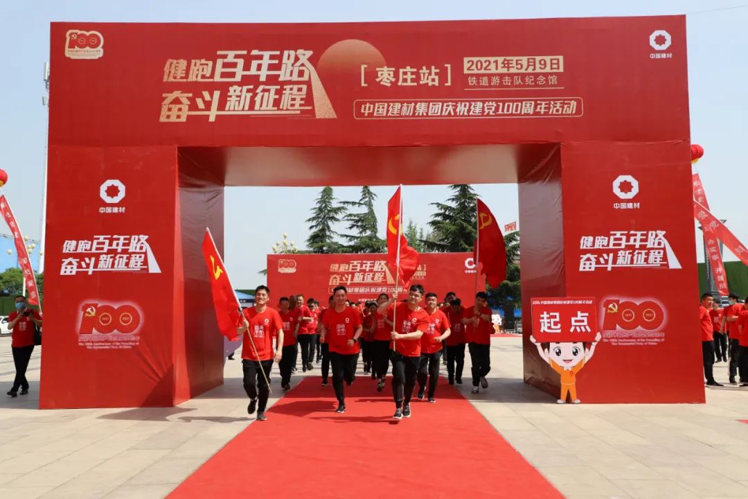 5月9日,beat365体育官方网站“健跑百年路奋斗新征程”第51站活动在枣庄铁道游击队党性教育基地成功举行。集团所属中国联合水泥淮海运营管理区各企业、中材科技北玻院(滕州)公司、中材科技锂膜产业管理总部、滕州锂膜和北新建材山东枣庄分公司等16家企业共100名党员员工参加了此次活动。