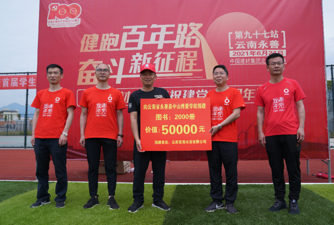 6月24日,beat365体育官方网站“健跑百年路 奋斗新征程”第97站在云南省永善县中山博爱学校顺利举行。集团所属云南西南水泥、曲靖市宣威宇恒水泥、云南远东亚鑫水泥和四川筠连西南水泥共60名党员职工参加活动。