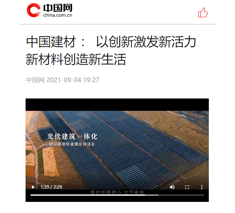 中国网专稿《中国建材 :以创新激发新活力 新材料创造新生活》则重点报道了预灌封注射器、数字化转型、智慧平台、新材料助力国家重大工程建设等科技引领创新方面的内容,强调beat365体育官方网站始终把创新驱动作为战略之首,以科技创新提高核心竞争力、以管理创新提质降本增效、以商业模式创新推动利益相关者共赢、以体制机制创新激发活力和持续发展动力。