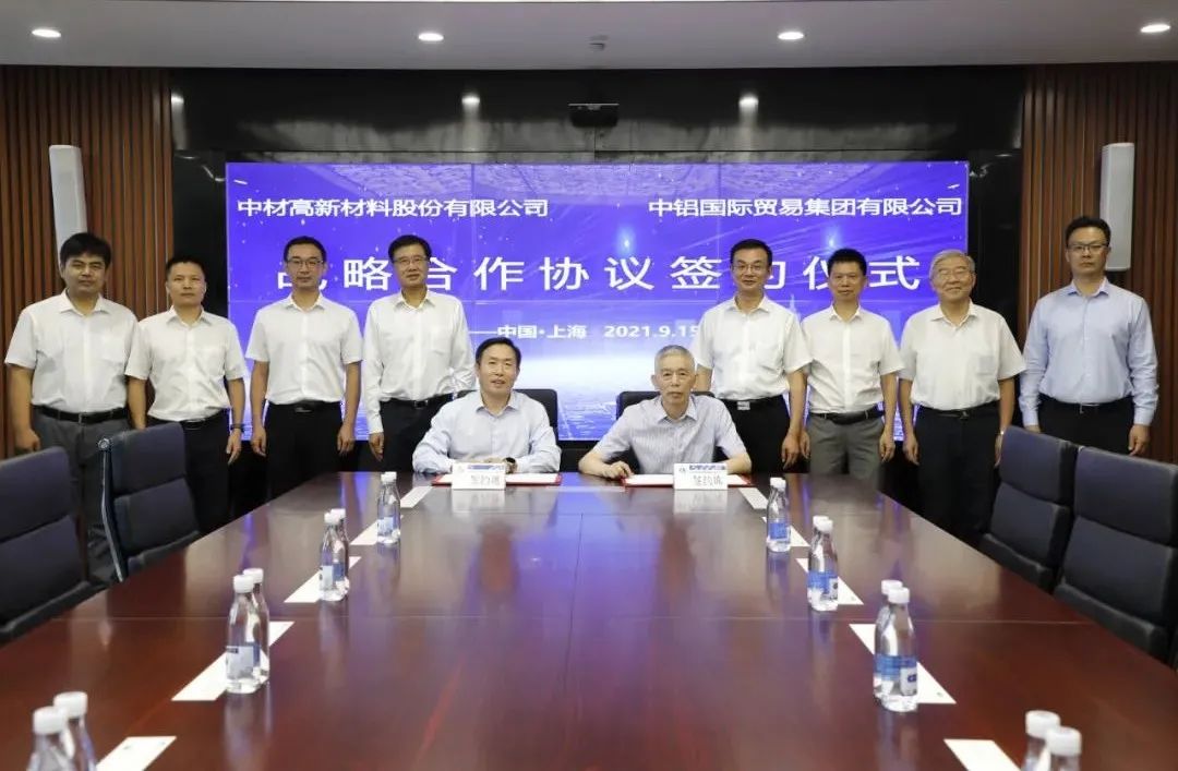 9月15日,中材高新材料股份有限公司与中铝国际贸易集团有限公司在上海中铝大厦举行战略合作签约仪式,中国建材股份有限公司副总裁余明清、中国铝业股份有限公司副总裁蒋涛出席并见证签约仪式,中材高新党委副书记、总裁张伟儒,中铝国贸集团党委书记、董事长、总经理赵晋华代表双方在战略合作协议上签字。中材高新和中铝国贸集团有共同的央企基因和多年良好的合作基础,在新材料上下游诸多领域合作空间广阔,此次战略合作协议的签订,将推动中铝股份精细氧化铝产业与中国建材先进陶瓷、新能源材料产业的深入合作,互利共赢。