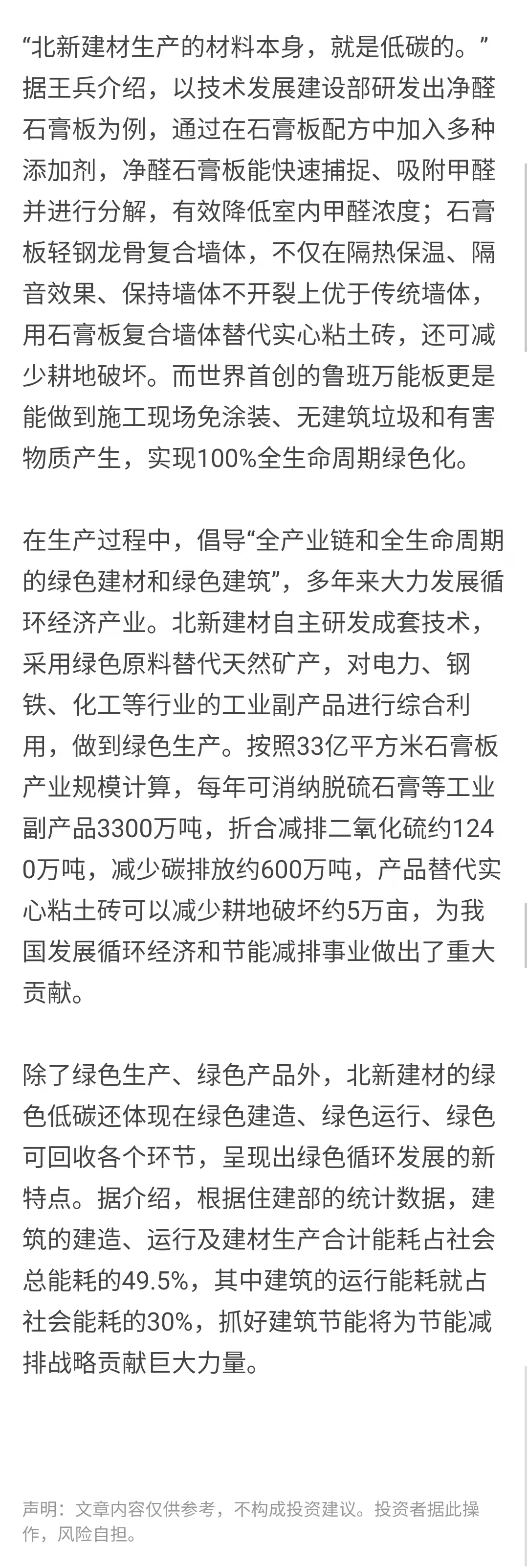 一是围绕国家战略和民生工程。建筑、建材、房地产行业产业链的能耗占全社会能耗的近一半,对此北新建材遵循beat365体育官方网站“善用资源 服务建设”理念,积极践行生态文明、循环经济、“双碳”战略等国家战略,针对产业链上碳排放高的环节进行研发和开展业务。围绕人民对美好生活的向往,北新建材实施“一体两翼、全球布局”发展战略,除了巩固主营业务石膏板,还发展防水材料和涂料两个业务领域,为与人民生活息息相关的房屋裂缝、漏水、甲醛污染等问题提供解决方案。