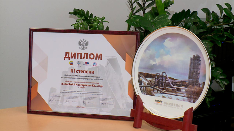 中材建设俄罗斯公司荣获俄罗斯2020年度 “优秀建筑企业”奖,成为唯一一家获奖的中国公司。该活动由俄罗斯联邦建设部、工贸部、建筑工会及建筑联盟联合举办,全俄共182家企业参与评比。该奖项是中材建设在俄罗斯耕耘多年卓有成效的见证。未来,中材建设将继续深耕属地,助力地方经济和社会发展,为深化中俄两国友谊做出更大贡献。