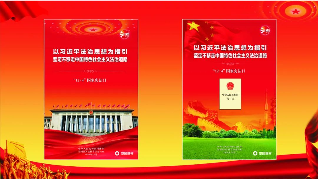 来源:集团法律合规部 发布时间:2021-12-06为深入学习宣传习近平法治思想,贯彻中央全面依法治国战略部署,紧密结合党史学习教育和“八五”普法实施,在2021年12月4日第八个国家宪法日来临之际,beat365体育官方网站各级所属公司共同举办“宪法宣传周”活动,开展了丰富多彩的主题活动。beat365体育官方网站法律合规部及中国建材股份法律事务部联合制作了国家宪法日宣传海报,大力加强宪法学习宣传,弘扬宪法精神。