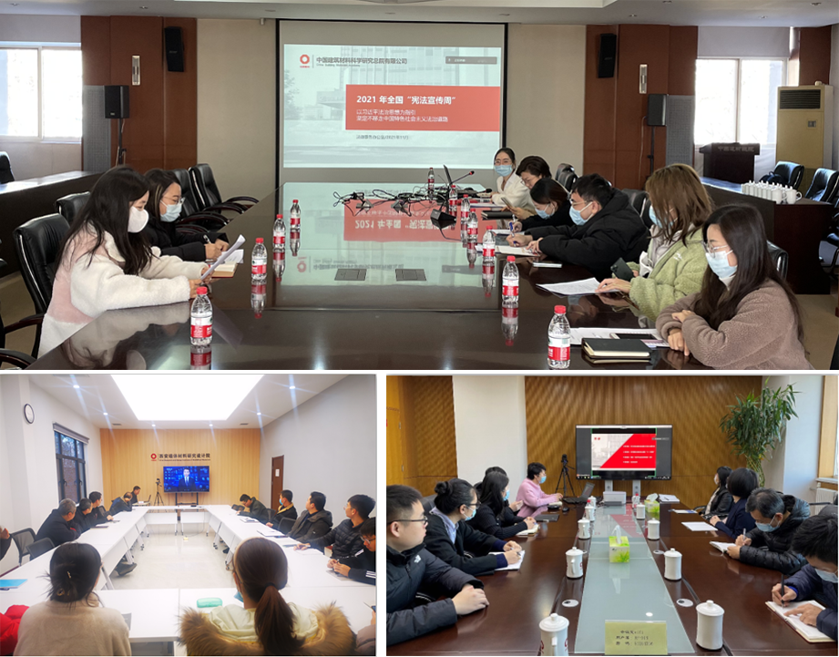为落实好中央宣传部、司法部、全国普法办关于组织开展“宪法宣传周”的部署,中国建材总院围绕“以习近平法治思想为指引 坚定不移走中国特色社会主义法治道路”这一主题,11月30日上午,举行了学习习近平法治思想专题宣传活动,活动主要以观看宣传短片的方式,在总院设主会场,非在京单位通过视频会议方式参会。法治兴,则国家兴。本次宣传活动致力于传播弘扬习近平法治思想精神,树立宪法权威的理念,提高员工的宪法意识与守法理念,引导员工自觉成为宪法的忠实崇尚者、自觉遵守者、坚定捍卫者,为进一步落实依法治企奠定基础。