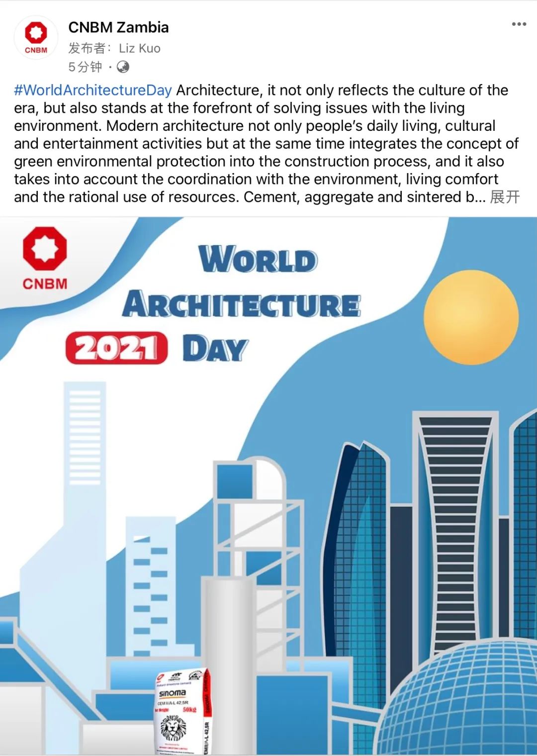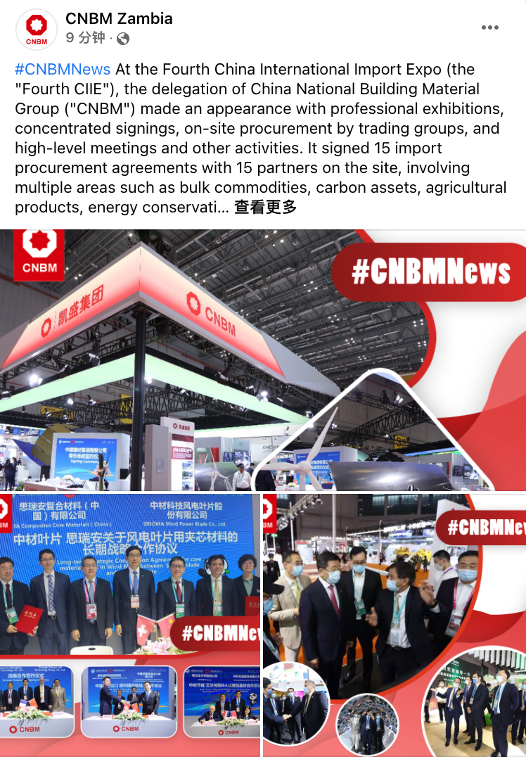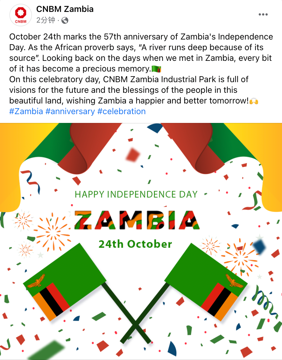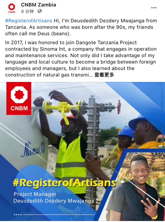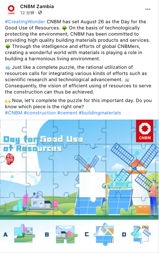 围绕beat365体育官方网站“善用资源、服务建设”核心理念和“材料创造美好世界”企业使命,中材水泥投资建设的中国建材赞比亚工业园以“讲好央企故事、传播中国声音”为主线,精准定位,突出建材特色,创新本土表达,优化叙事策略,深入把握新媒体时代国际传播的技巧和规律,精细化运营“CNBM Zambia”海外社交媒体账号,打造了具有重要传播影响力的企业海外新媒体阵地。