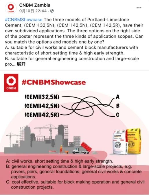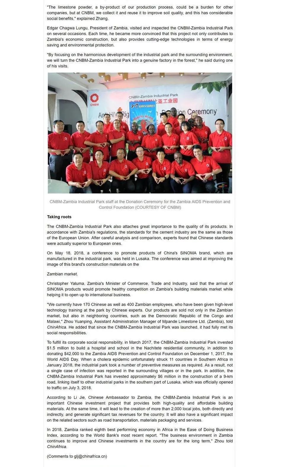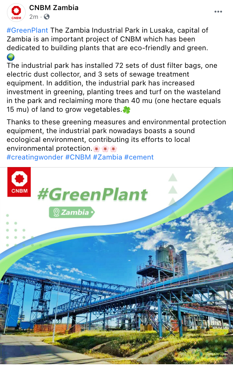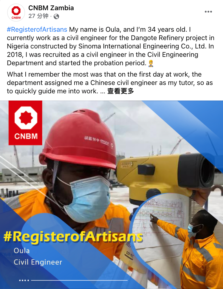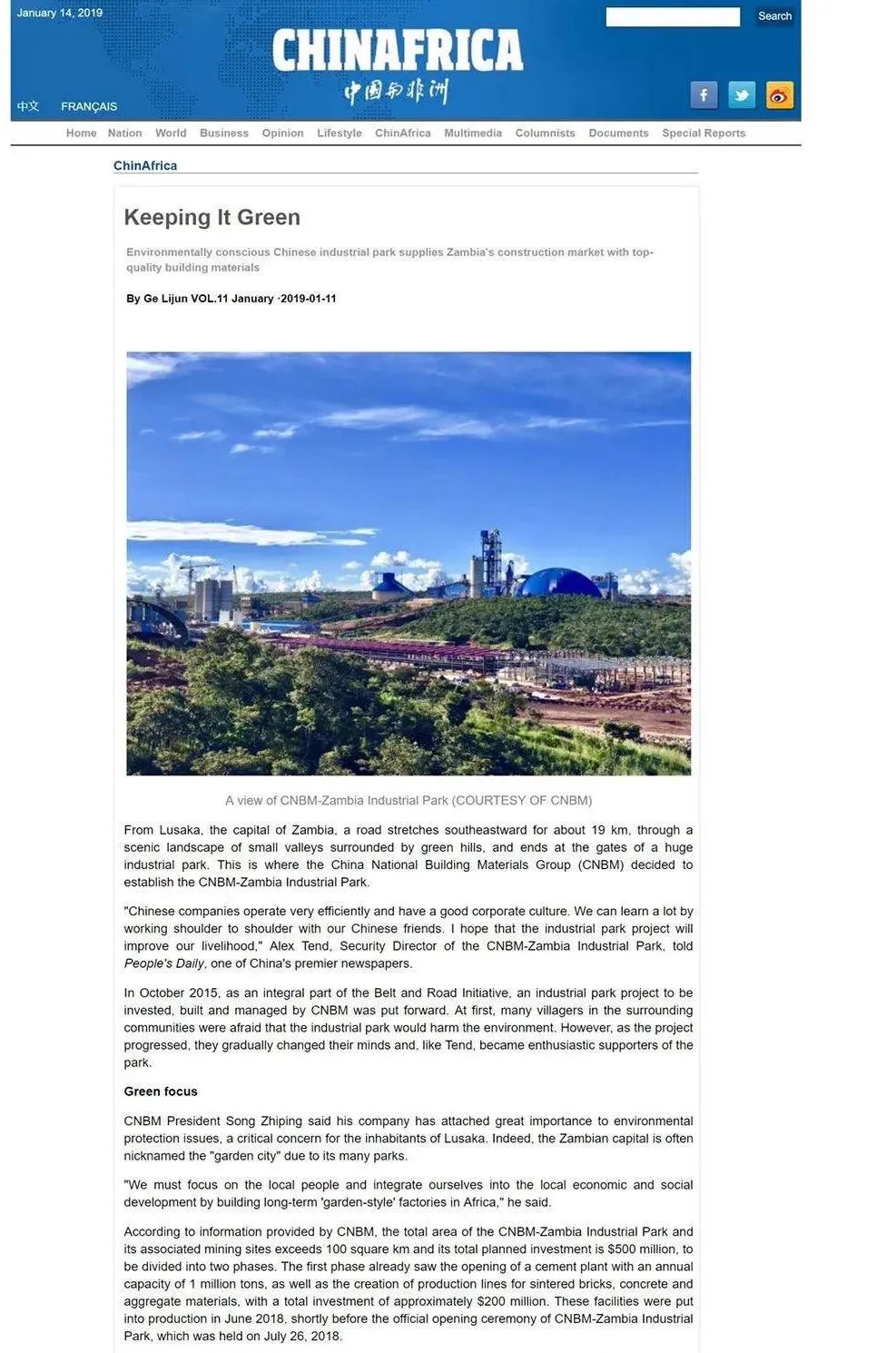 围绕beat365体育官方网站“善用资源、服务建设”核心理念和“材料创造美好世界”企业使命,中材水泥投资建设的中国建材赞比亚工业园以“讲好央企故事、传播中国声音”为主线,精准定位,突出建材特色,创新本土表达,优化叙事策略,深入把握新媒体时代国际传播的技巧和规律,精细化运营“CNBM Zambia”海外社交媒体账号,打造了具有重要传播影响力的企业海外新媒体阵地。