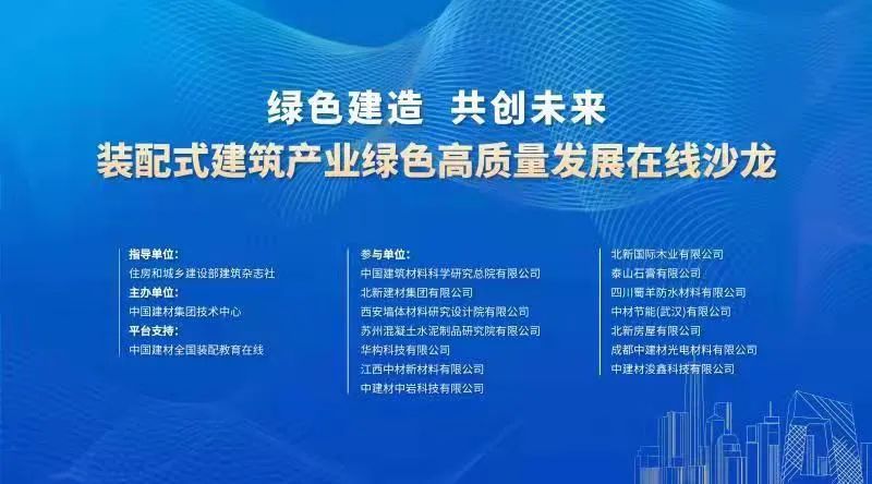 1月22日,由beat365体育官方网站技术中心主办的绿色建造、共创未来——推动装配式建筑产业绿色高质量发展系列在线沙龙活动圆满结束。本次系列沙龙活动共4期,由住房和城乡建设部建筑杂志社提供指导,通过中国建材全国装配教育在线平台面向全网直播。