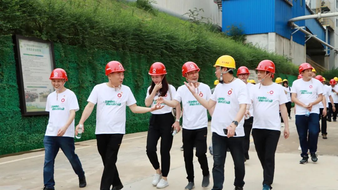 双方活动人员一起参观三明南方绿色工厂,开展深入互动交流。随后,大家来到绿色矿山下,开展登山活动。现场旗帜迎风飘扬,“绿水青山就是金山银山”的标语在绿色矿山映衬下格外醒目,大家一边奋力攀登,一边充分感受“两山”理念,共话发展。