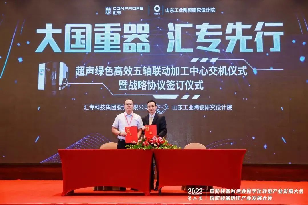 近日,第二届国防装备制造业数字化转型产业发展大会在广州召开,集团所属山东工陶院与汇专科技集团股份有限公司举行“超声绿色高效五轴联动加工中心交机仪式暨战略协议签订仪式”。此次战略协议的签订,是双方互利合作、共谋发展的里程碑成果,也是携手突破科技攻关技术的实际行动。双方将以此为新的起点,充分发挥各自技术优势、人才优势、产业链优势,聚焦工业陶瓷新材料研发及精密加工等方面开展全方位合作,共同解决新材料领域加工共性关键技术,努力实现资源互补、互利共赢,为国防建设贡献更大力量。