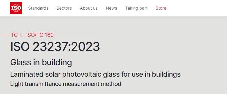 近日,从国际标准化组织(ISO)官网获悉,由中国建材国际工程集团有限公司牵头制定的国际标准ISO 23237:2023《Glass in building—Laminated solar photovoltaic glass for use in buildings—Light transmittance measurement method》(建筑用光伏玻璃组件透光率测试方法)正式发布。