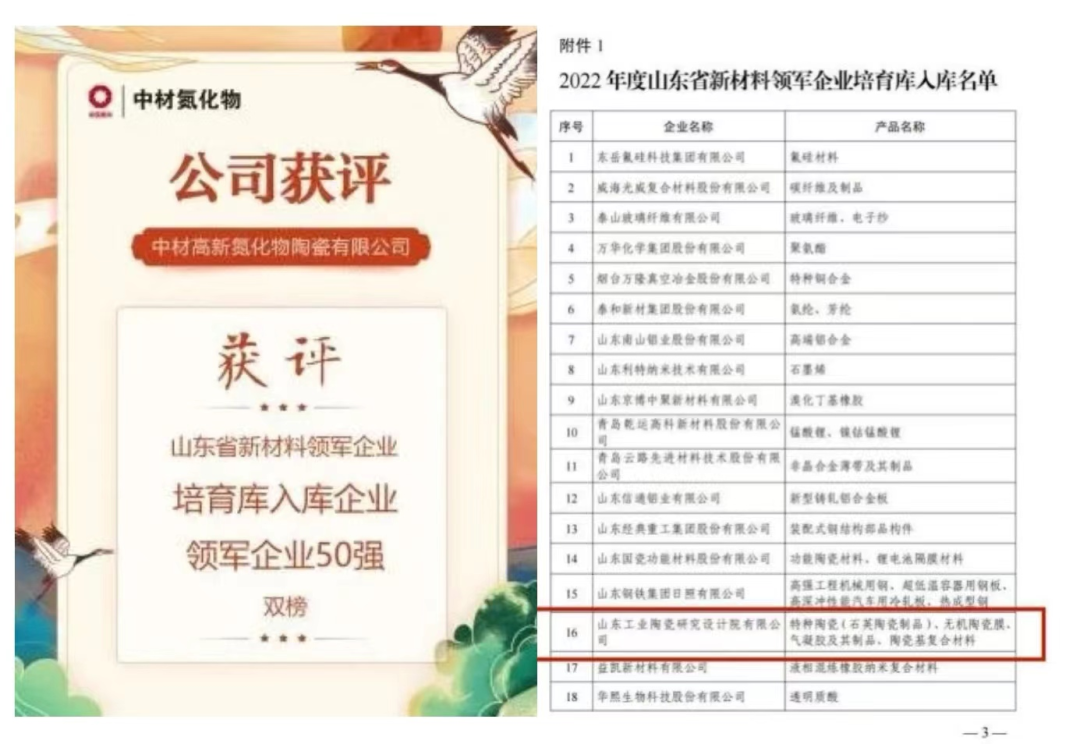 1个重点项目获2022年度建材科技奖科技发明一等奖;建材联合会“建筑材料行业氮化物工程中心”在淄博揭牌。山东工陶院和氮化物公司先后入选山东省新材料领军企业培育库入库企业和山东省新材料领军企业50强。晶体院、工陶院牵头承担的“十四五”国家重点研发计划项目启动会暨实施方案咨询审议会分别顺利召开。2023年新申请专利93项,新增授权专利69项,组织申报标准40余项。