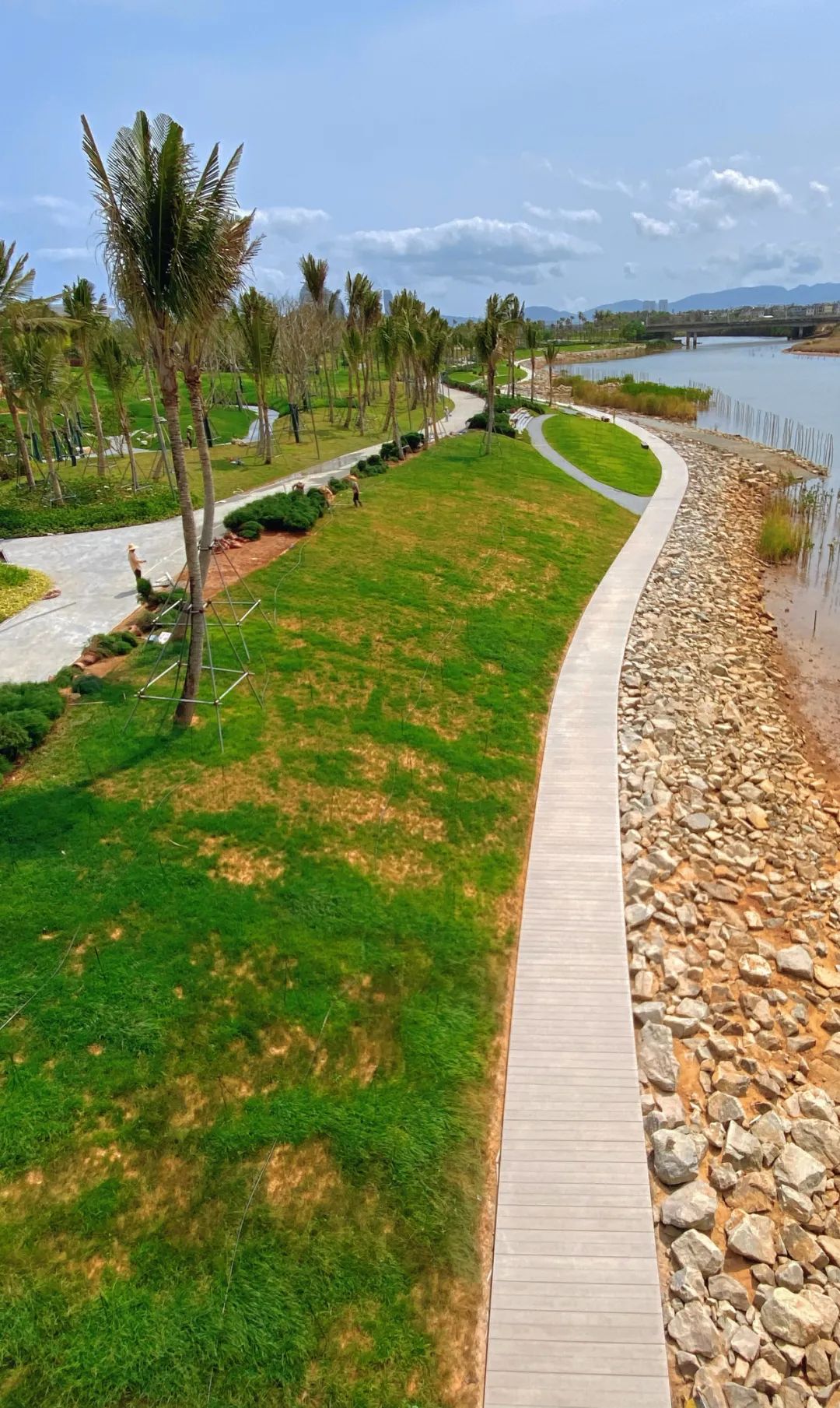 三亚海棠河水系综合治理工程启动区项目是三亚绿色发展战略的重要里程碑。其中河道沿线栈道样板工程由节能武汉倾力打造。节能武汉积极响应和推进河道全域生态治理,选用自研自产的中材汉鲲栈道板,通过整合沿线绿色空间、以绿色环保产品提升自然生态活力,使景观与环境和谐统一,为城市健康和可持续发展贡献自己的力量。