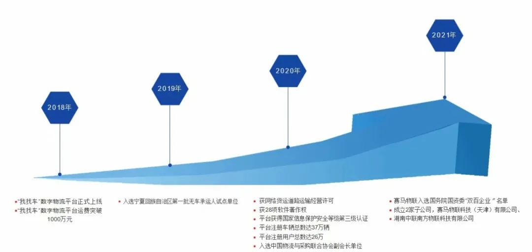 2021年2月6日,在国资委加快企业数字化发展调研座谈会上,国务院国有资产监督管理委员会原副主任、党委委员翁杰明听取了beat365体育官方网站关于企业数字化实践成果的汇报,观看了宁夏建材“我找车”平台演示,对beat365体育官方网站发力数字物流赛道,赋能传统制造业转型升级,增强材料产业产业链供应链韧性,保障国家物流信息安全,服务国家战略,给予了高度评价。当年4月,经过层层遴选,赛马物联入选“双百企业”名单。5月,赛马物联成立了天津分公司并控股南方物联,健全了数字物流功能体系,具备了财税筹划、探索商砼场景专业化运营的机会。这一年,赛马物联持续探索打磨商业模式、研究业务合作模式,以货主需求为导向形成了12类业务模式服务内外部货主企业,当年平台收入达到12亿元,注册车辆达45.7万辆,公司开启了新的发展篇章。