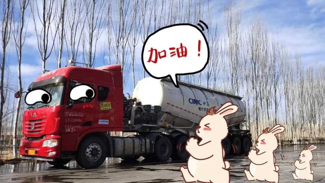 我是来自喀和销售分公司的水泥运输车,我的口号是:按时发车,一路前行,风里雨里只为你。