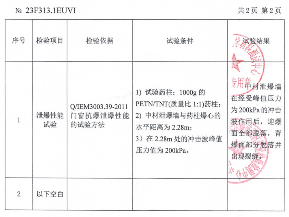 2. 泄爆墙经过爆炸时一定压力值冲击波作用后,墙体正、背面泄爆板脱落呈块状或粉末状,无尖锐棱角且自重轻,有效减少爆炸力的叠加效应。