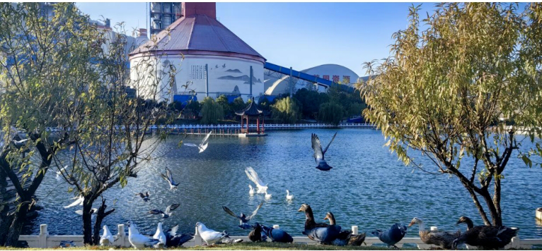公司还大力推进厂区园林绿化和美化建设,道路硬化、优化平面布置,根据自然条件进行绿化和创意景点设置,绿化率超过95%,消除绿化盲区,厂区内树木葱茏、绿草如茵,四季繁花似锦,办公区爱心湖碧波荡漾、鱼肥水美、天鹅野鸭徜徉其中,俨然一座人与自然和谐共处的花园式绿色工厂。