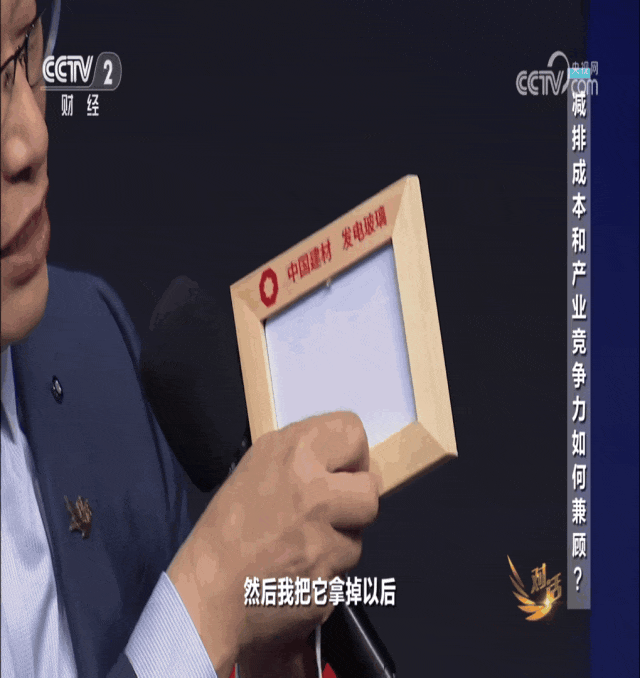 王于猛:比如说在源头减碳这些方面,用一些含钙量低的(原料)来替代石灰石。比如说我们用到了钢渣,用到了粉煤灰,还用到了电石渣。2024年我们整个的原料替代1000万吨,碳排放减少了300多万吨,在燃料替代这些方面,我们已经培育出了非常好的产业。目前已经全国建立了14个燃料替代的加工中心。目前的年加工能力已经有150万吨以上,2024年已经实现了营业收入4亿元。应该讲减碳和社会贡献的效果是非常明显的。另一方面还可以用一些新能源的布局,要让我们的工艺流程中任何一个环节都能够去低排放。2021年我们建成了全球最大的一个光伏建筑一体化(工厂),就是我们有一种发电玻璃,把它应用到建筑上。今天我正好带了一个展品,大家看到现这地方有一个小灯,现在看的是比较暗的,基本是没有电的。我有一个板给它取下来以后,大家看到亮了。马上这个灯就不亮了,然后我把它拿掉以后,它直接就发电了。其实大家看到这么一个装置,就是我们讲的BIPV,就是建筑光伏的一体化。我们已经建成了全球水泥行业最大的年捕集20万吨的一个碳捕集生产线,用数字化的手段,把每一个环节我们用最好的方法让碳排放更低,让碳能够产生更好效益。