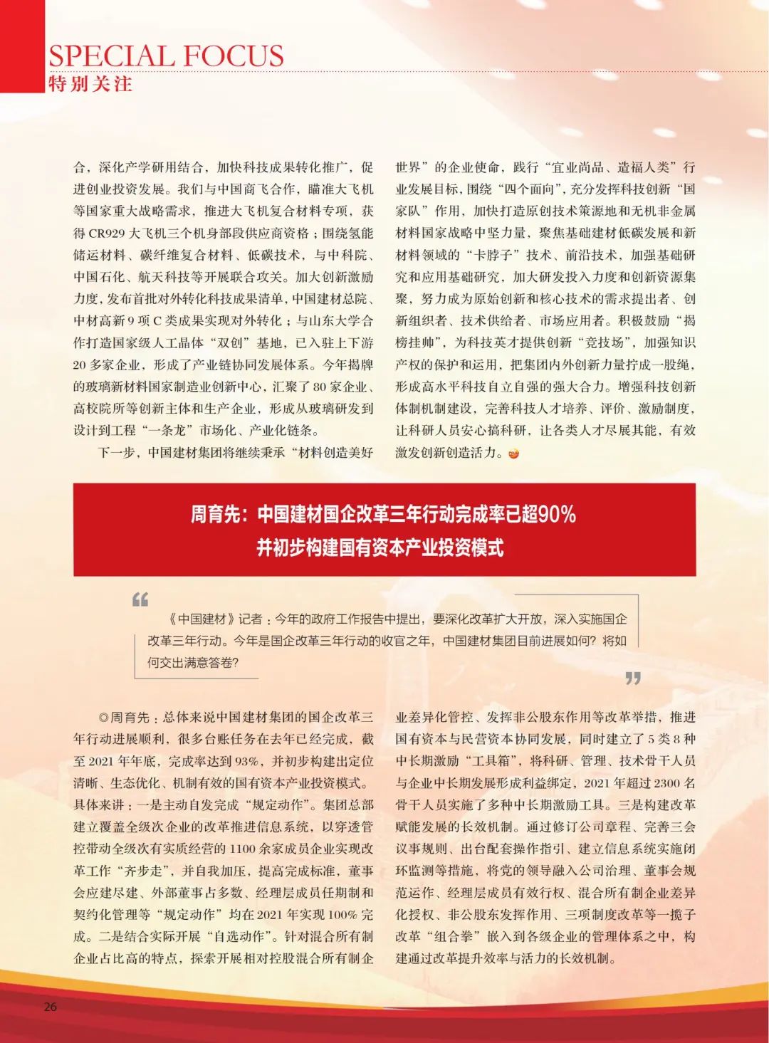 高端访谈 | 《中国建材》杂志专访周育先:中国建材改革创新,充分发挥“国家队”作用