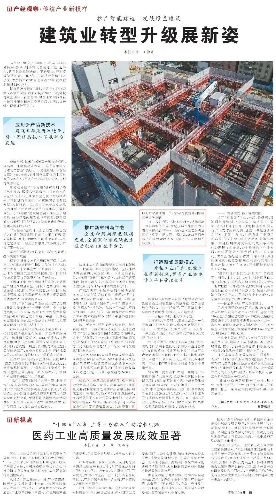 在《建筑业转型升级展新姿》报道中提及