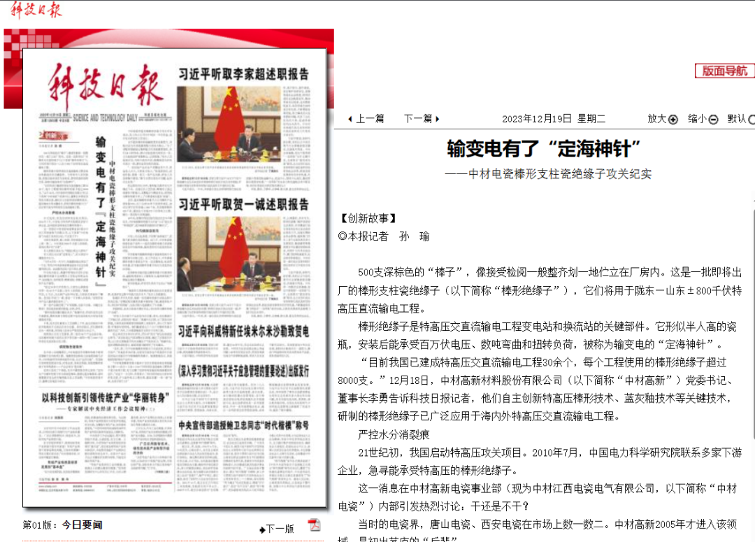 来源:《科技日报》、中材高新 发布时间:2023-12-22媒体聚焦