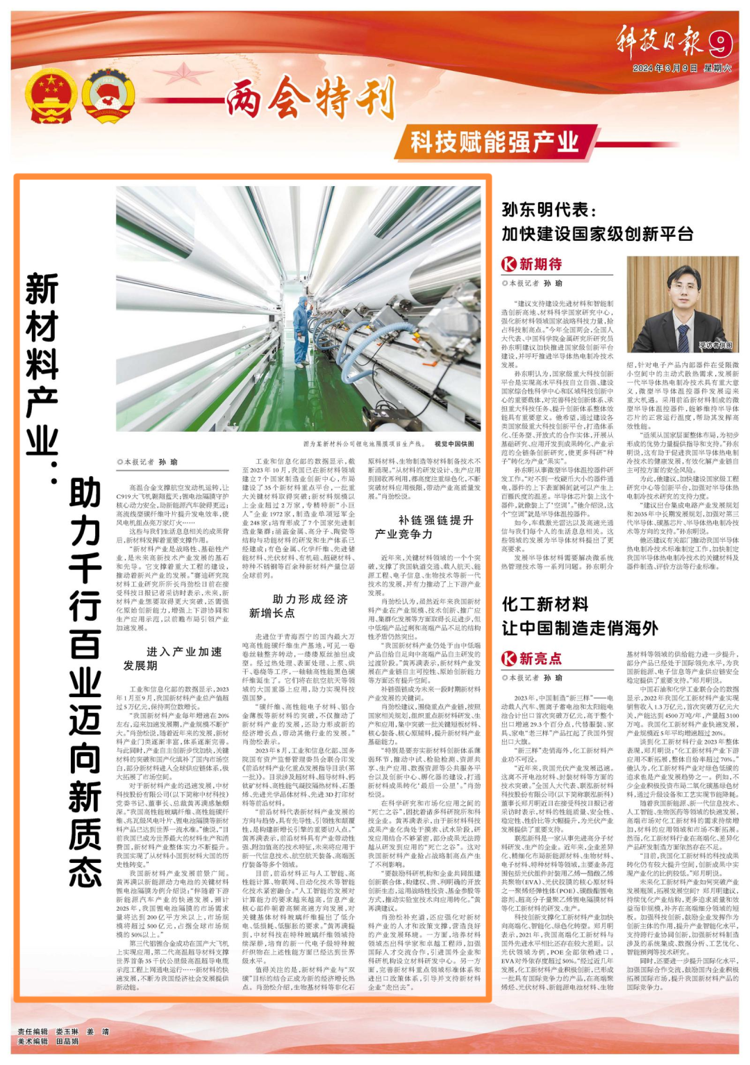 《科技日报》:新材料产业助力千行百业迈向新质态