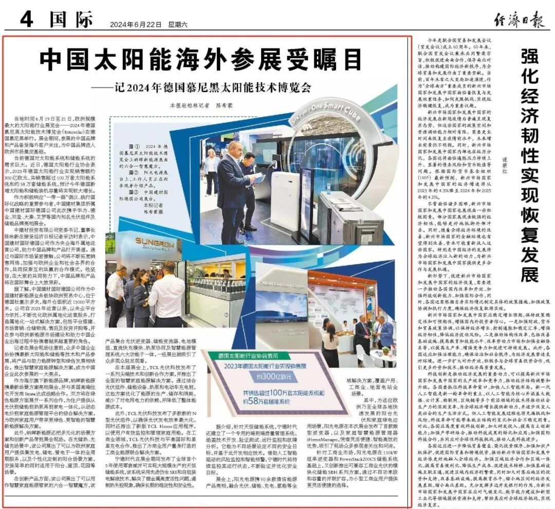 国际范儿 | 《经济日报》点赞中国建材国际德国公司太阳能参展受瞩目
